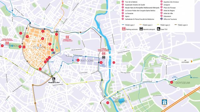 From Montpellier Saint-Roch Train Station: Tram Line 1 towards Odysseum – Place de l’Europe stop
